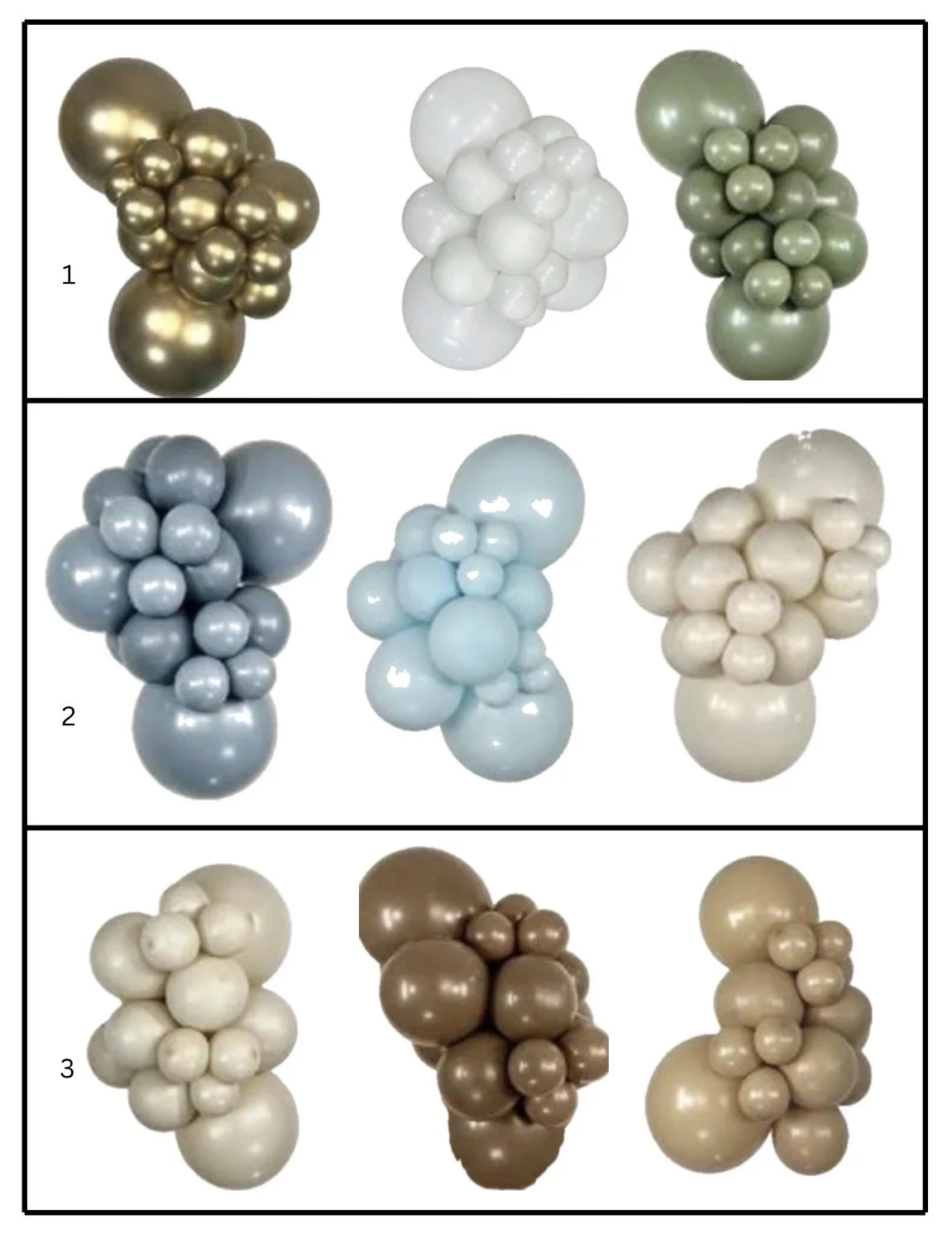Select one balloon garland for your celebration. Three coordinating balloon bouquets are also included for your special day.